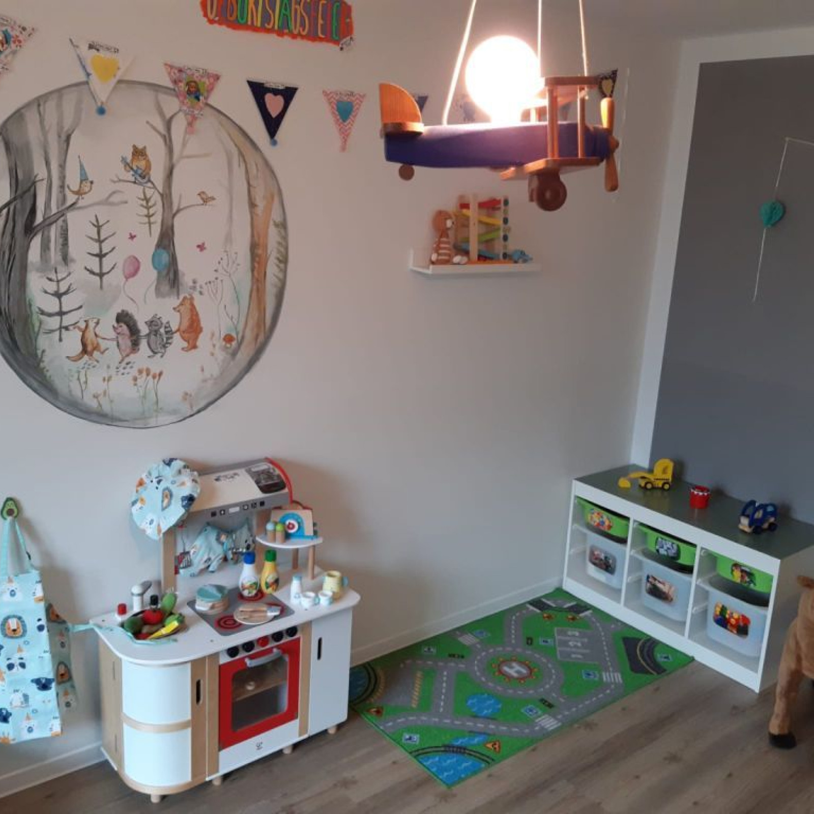 Die Räume unserer Kindertagespflege bieten den Kindern viel Platz zum Toben, Spielen und Schlafen. Es stehen 3 liebevoll eingerichtete Räume mit einer Fläche von insgesamt 65 Quadratmetern für vielfältige Entdeckungen bereit. Die Kindertagespflege findet in angemieteten Räumen statt. Die Einrichtung ist modern und mit der kindgerechten Ausstattung fühlen wir uns hier jeden Tag wohl. Sicherheit ist beim Spielen wichtig und so sind die Räume mit verschiedenen Features ausgestattet, die unbekümmertes Spielen ermöglichen.